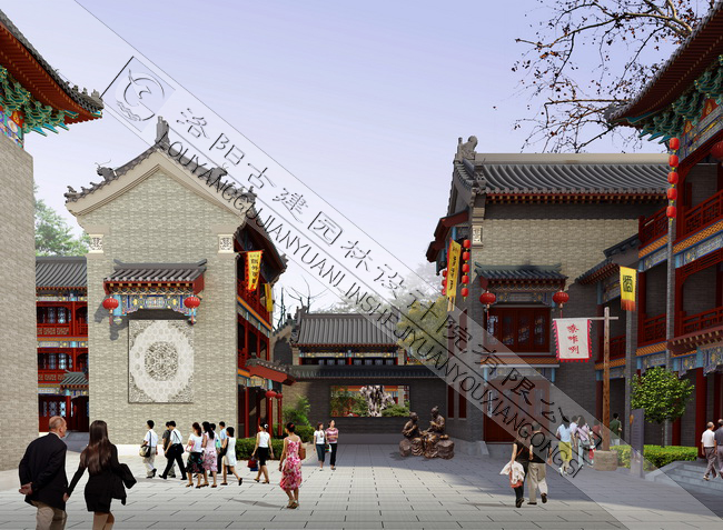 祭城古街自北向南設(shè)計(jì)了四個(gè)段落分區(qū),分別為“祭城掠影”,“歌舞升平”,“鼓樓鐘聲”和“古城遺韻”。